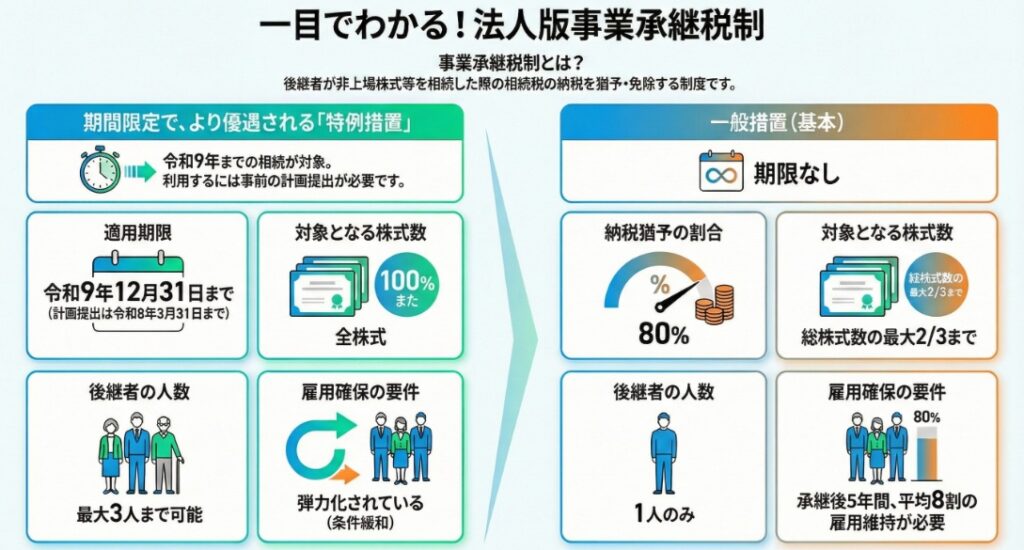 国税庁タックスアンサーの「No.4148 非上場株式等についての相続税の納税猶予及び免除の特例等(法人版事業承継税制)」について解説します。 解説動画 https://youtu.be/0rqf8qNzmAM 概要 法人版事業承継税制は、中小企業の後継者が相続等で取得した非上... -