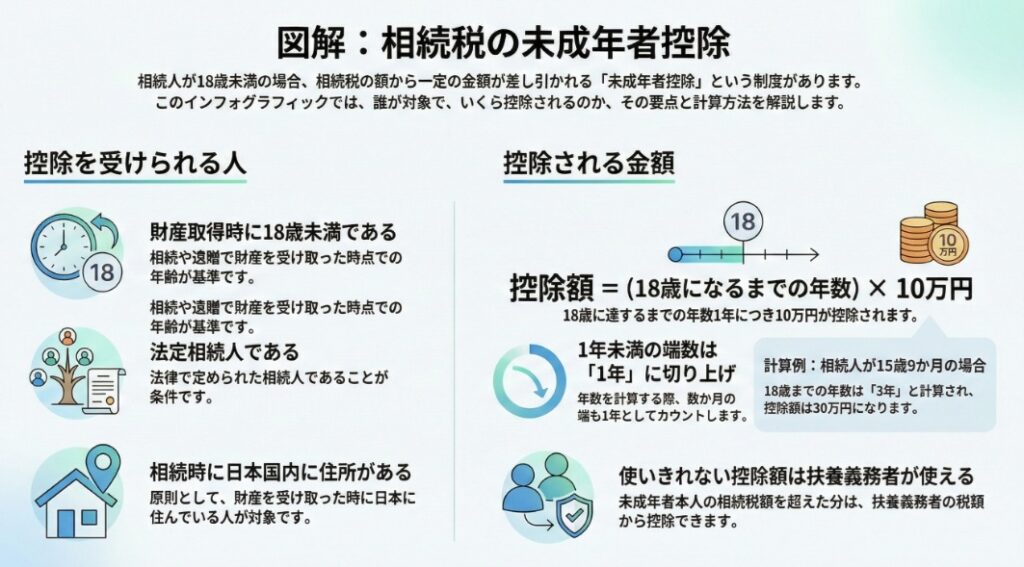 国税庁タックスアンサーの「No.4164 未成年者の税額控除」について解説します。 解説動画 https://youtu.be/RX8NoKOcU44 概要 相続税の「未成年者控除」とは、財産を取得した相続人が未成年者の場合に、その人の相続税額から一定の金額を差し引く制度です... -