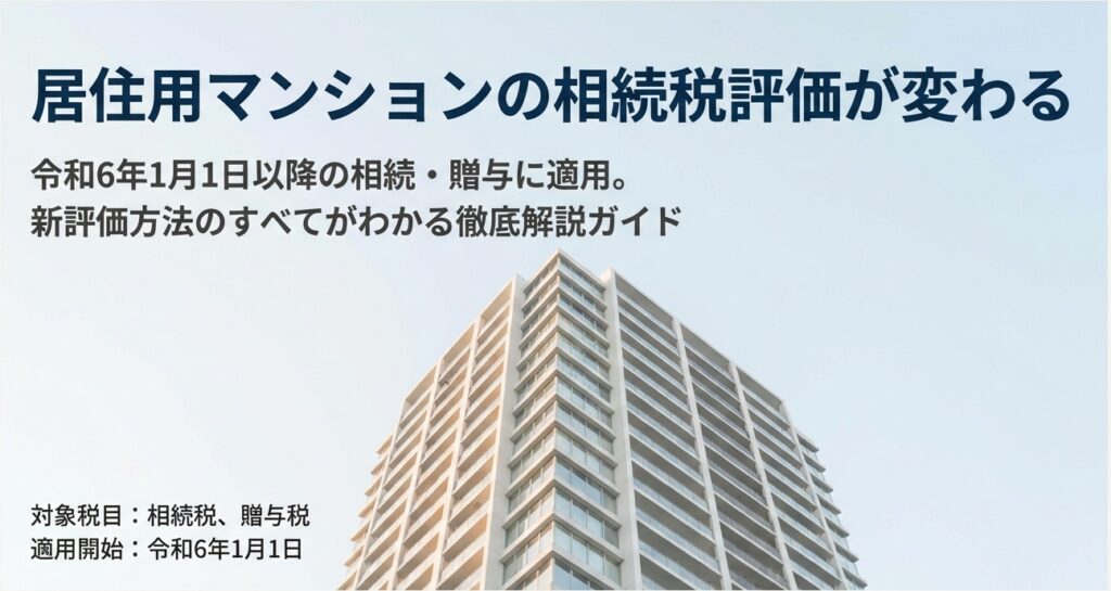 国税庁タックスアンサーの「No.4667 居住用の区分所有財産の評価」について解説します。 解説動画 https://youtu.be/ZViwWp1fVtM 概要 令和6年1月1日以後に相続または贈与により取得した居住用の区分所有財産(分譲マンション)の価額は、「居住用の区分所... -