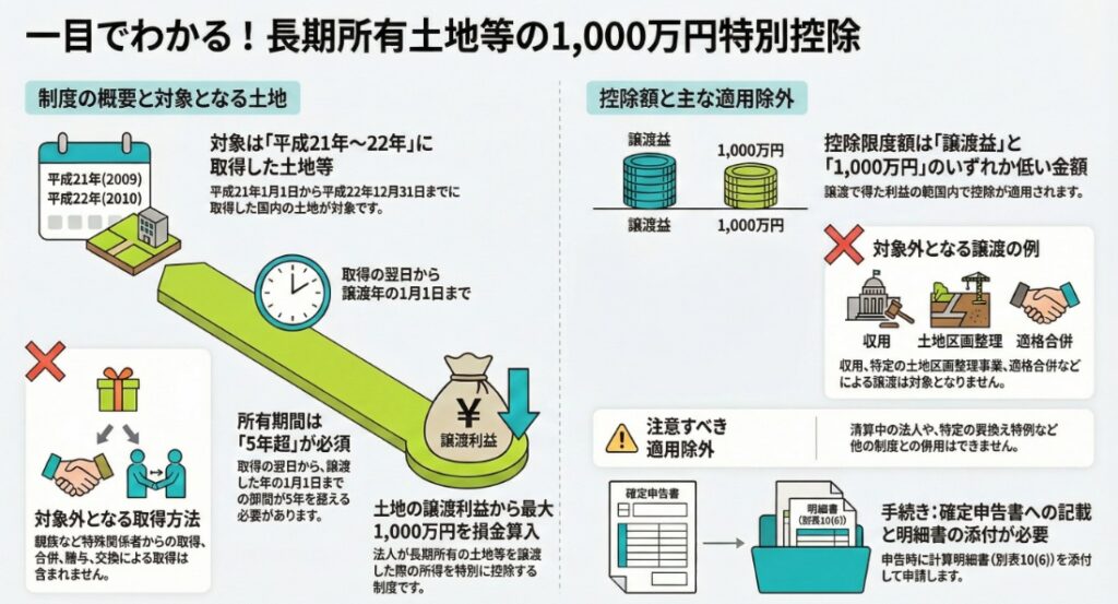 【国税庁タックスアンサー|法人税】No.5451 平成21年及び平成22年に取得した長期所有土地等の1,000万円特別控除