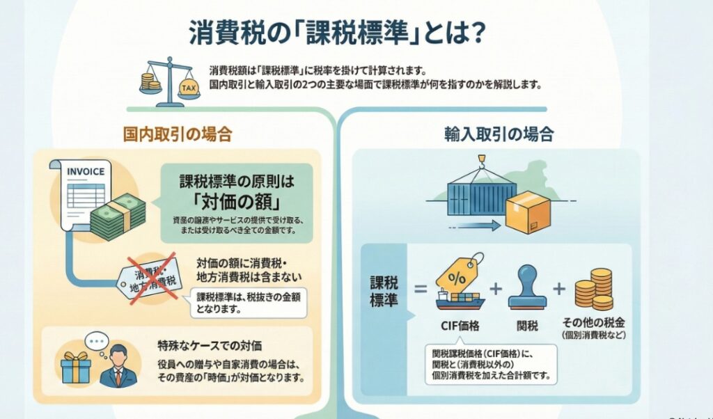 国税庁タックスアンサーの「No.6301 課税標準」について解説します。 解説動画 https://youtu.be/ExoskEzTXjk 概要 消費税における「課税標準」とは、消費税の税額を計算するために税率を乗じる基となる金額を指します。 課税資産の譲渡等(資産の譲渡、資... -