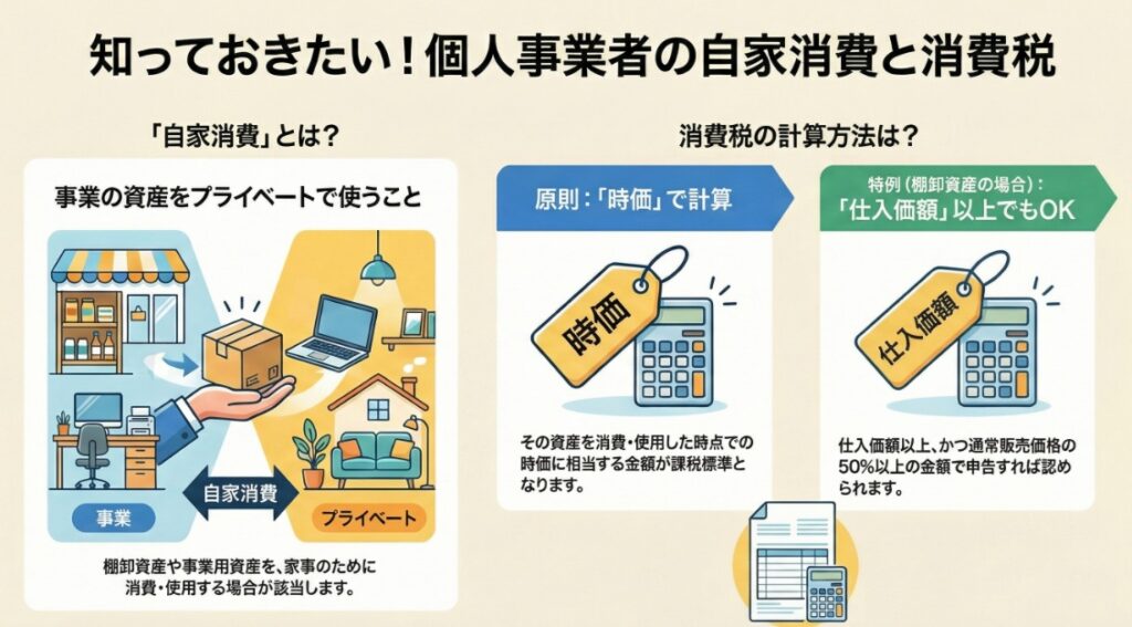 国税庁タックスアンサーの「No.6317 個人事業者の自家消費の取扱い」について解説します。 解説動画 https://youtu.be/hefTz9CfC1I 概要 個人事業者の自家消費とは、個人事業者が棚卸資産や事業用に使用していた棚卸資産以外の資産を、家事のために消費ま... -
