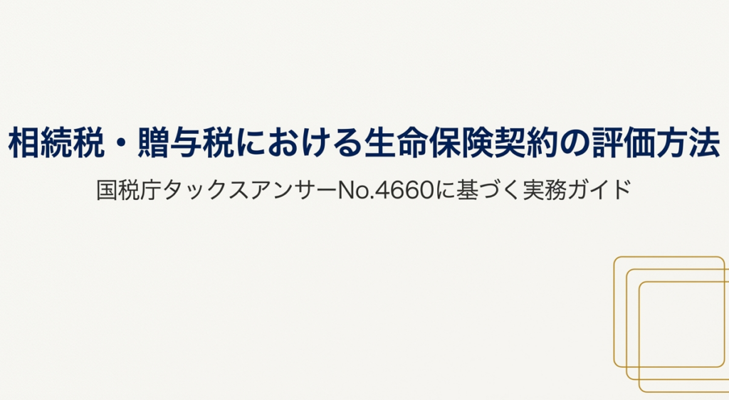 国税庁タックスアンサーの「No.4660 生命保険契約に関する権利の評価」について解説します。 解説動画 https://youtu.be/wovnYtJNaUw 概要 生命保険契約に関する権利の価額は、相続税や贈与税の対象として評価されます。保険事故が発生していない場合、そ... -