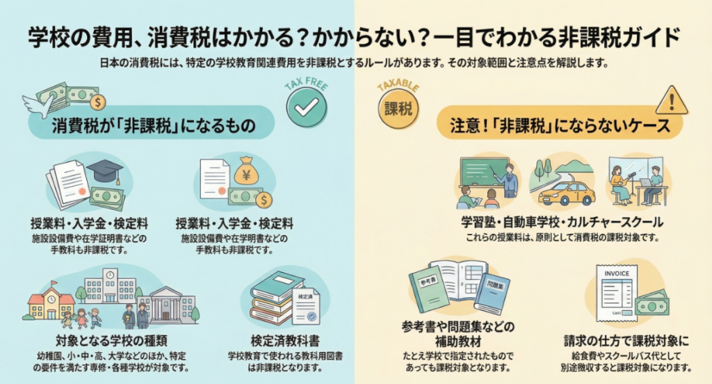 国税庁タックスアンサーの「No.6233 学校の授業料や入学検定料、教科用図書の譲渡など」について解説します。 解説動画 https://youtu.be/toTHK1_I_Bo 概要 消費税の課税対象において、学校教育は社会政策的な配慮から非課税とされています。この非課税措... -