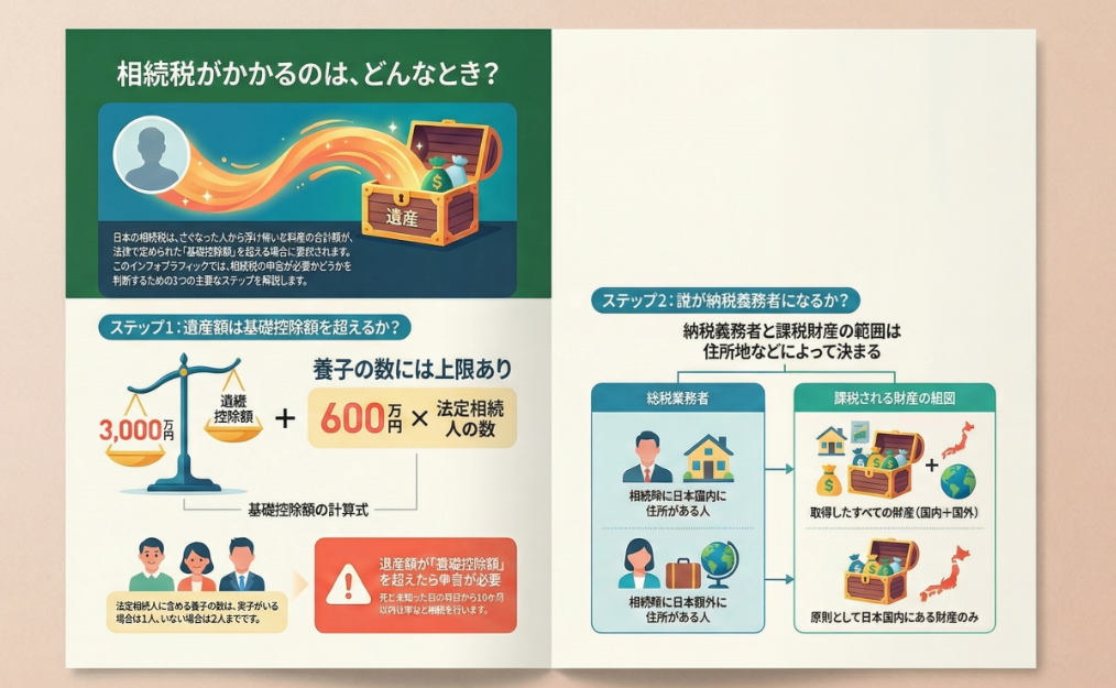 国税庁タックスアンサーの「No.4138 相続人が外国に居住しているとき」について解説します。 解説動画 https://youtu.be/jV2HSzB3ny0 概要 相続人が外国に居住し日本に住所がない場合、原則として日本国内にある財産のみが相続税の課税対象となります。 た... -