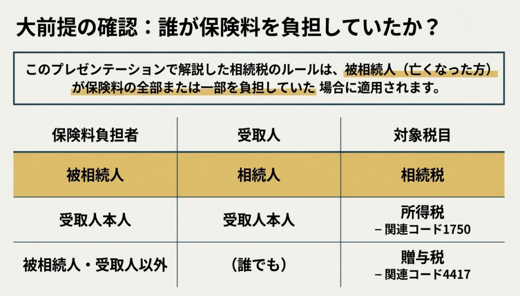国税庁タックスアンサーの「No.4114 相続税の課税対象になる死亡保険金」について解説します。 解説動画 https://youtu.be/bgPhMf9dmtM 概要 被相続人が保険料の全部または一部を負担していた死亡保険金や損害保険金(偶然の事故による死亡に伴うもの)は... -