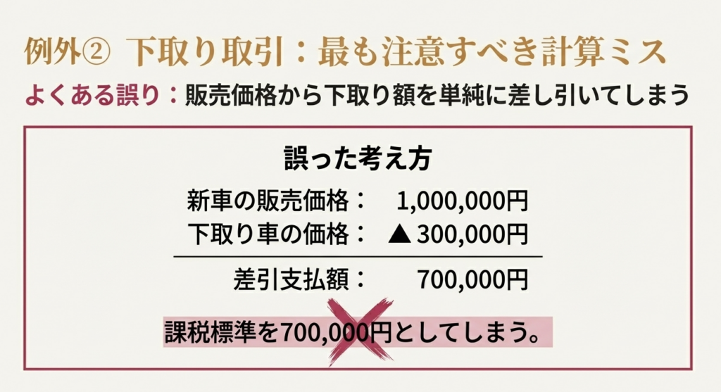 国税庁タックスアンサーの「No.6305 商品の安売りや下取りがあるとき」について解説します。 解説動画 https://youtu.be/DvL6FRbk03A 概要 消費税の課税標準は、原則として課税資産の譲渡等の対価として収受すべき一切の金銭等の額によります。 したがって... -
