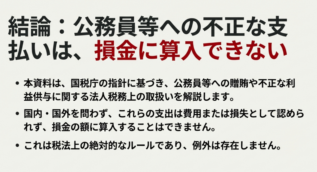 【国税庁タックスアンサー|法人税】No.5385 公務員に対する贈賄や外国公務員に対する不正な利益供与の取扱い