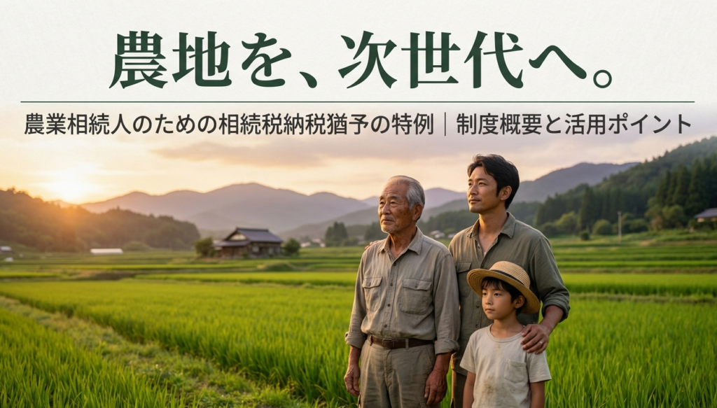 国税庁タックスアンサーの「No.4147 農業相続人が農地等を相続した場合の納税猶予の特例」について解説します。 解説動画 https://youtu.be/qXIw3VePyb4 概要 農業を営んでいた被相続人から一定の相続人が農地等を相続し、自ら農業を継続(または特定の貸... -