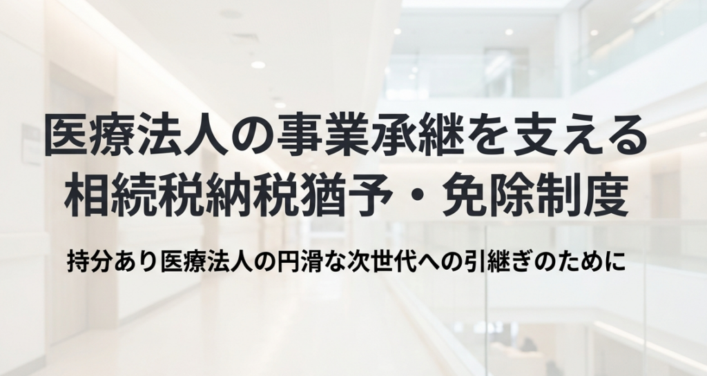 国税庁タックスアンサーの「No.4150 医療法人の持分についての相続税の納税猶予の特例」について解説します。 解説動画 https://youtu.be/JUNmPqtWVT4 概要 この特例は、相続人が医療法人の持分を承継した際、その法人が「認定医療法人」であれば、持分相... -