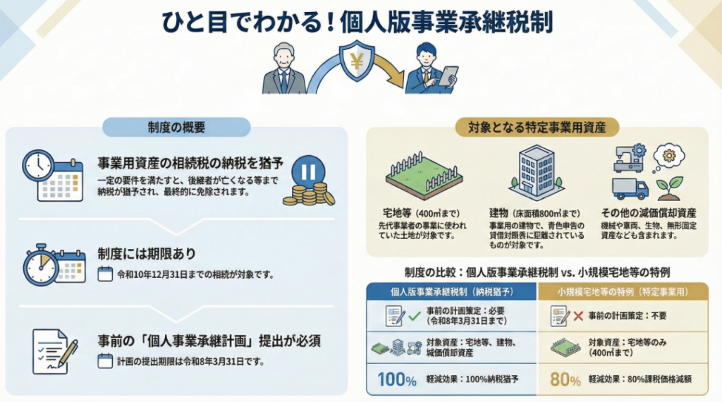 国税庁タックスアンサーの「No.4153 個人の事業用資産についての相続税の納税猶予及び免除(個人版事業承継税制)」について解説します。 解説動画 https://youtu.be/2FNos2rqsYY 概要 「個人版事業承継税制」は、後継者が令和10年末までに、青色申告を行... -