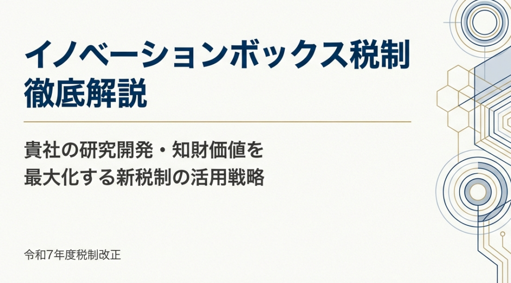国税庁タックスアンサーの「No.5923 イノベーションボックス税制(特許権等の譲渡等による所得の課税の特例)」について解説します。 解説動画 https://youtu.be/YVKSvjLqUCU 概要 イノベーションボックス税制は、青色申告法人が自社で研究開発した特許権... -