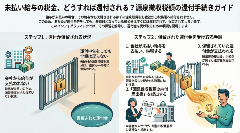 国税庁タックスアンサーの「No.2031 未納付の源泉徴収税額に対する還付手続」について解説します。 解説動画 https://youtu.be/6cH5napStdc 詳細 未納付の源泉徴収税額に対する還付手続とは、給与の未払いなどにより源泉徴収が行われていない状態で還付申... -