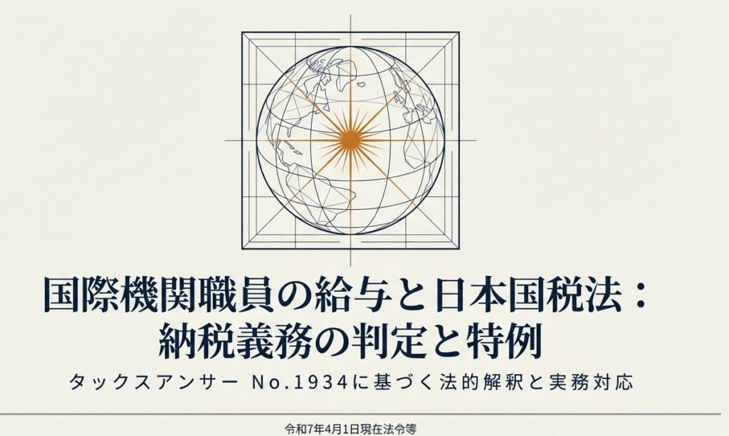 国税庁タックスアンサーの「No.1934 国際機関に勤務している人が受給する給与等に関する課税関係)」について解説します。 解説動画 https://youtu.be/BWaDeMFAJiA 詳細 日本の居住者が国際機関から受け取る給与は、原則として「給与所得」として課税され、... -