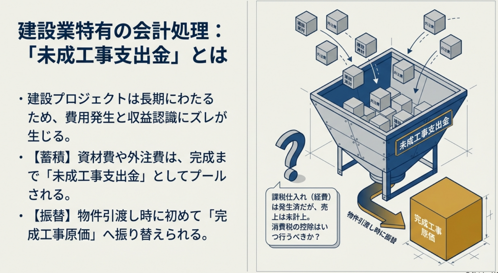 国税庁タックスアンサーの「No.6487 未成工事支出金の仕入税額控除の時期」について解説します。 解説動画 https://youtu.be/5C74qMS2JZg 詳細 建設業などが計上する未成工事支出金(工事中の資材費や外注費など)に係る仕入税額控除の時期には、原則と特... -