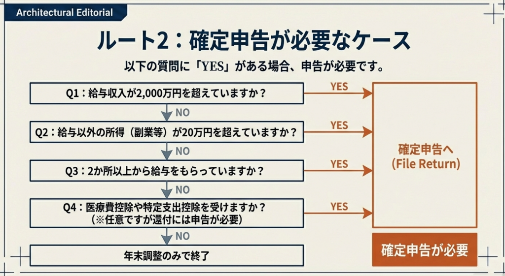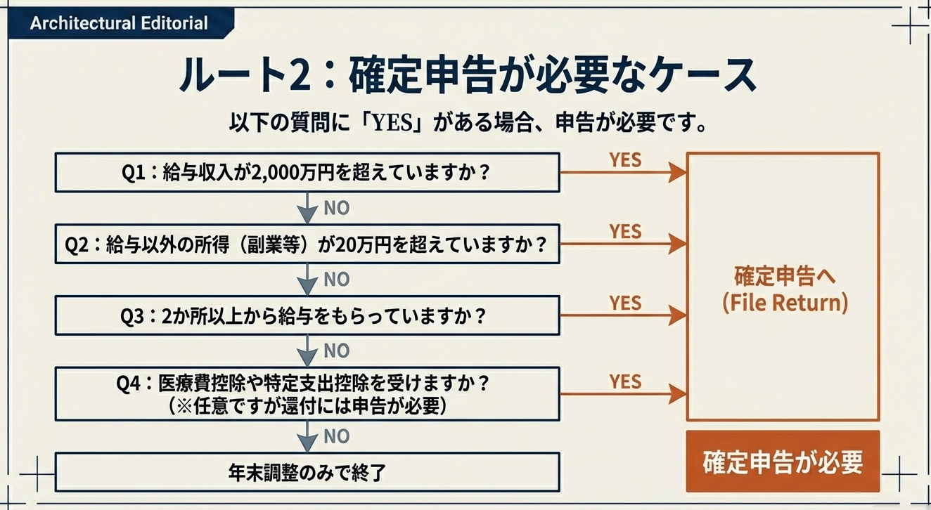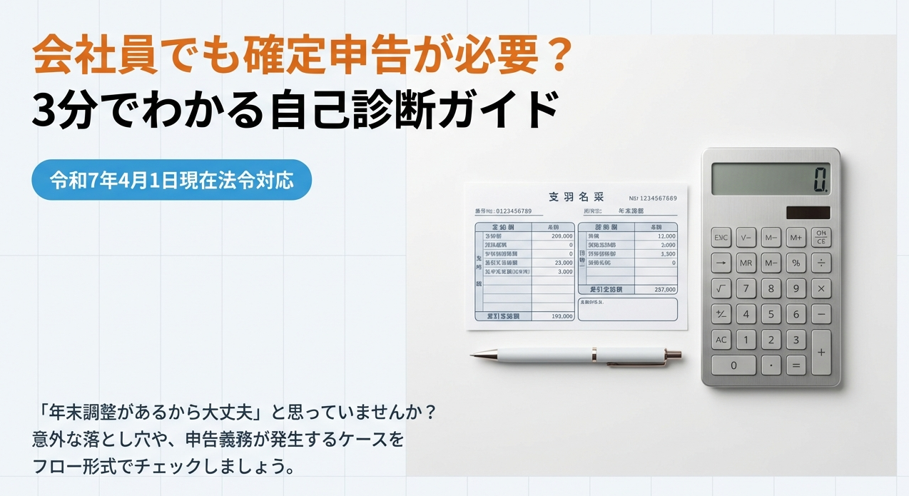 国税庁タックスアンサーの「No.1900 給与所得者で確定申告が必要な人」について解説します。 解説動画 https://youtu.be/BalCI0YN-Dg 詳細 多くの給与所得者は年末調整で納税が完了するため、確定申告は原則不要です。しかし、以下の条件に該当する人は申... -