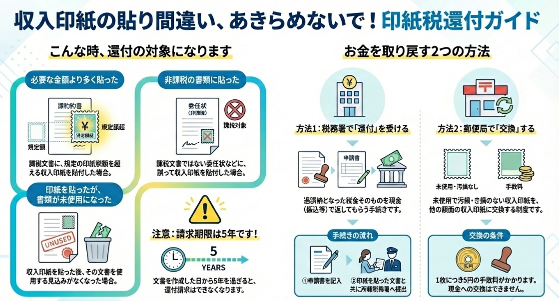 2. 結論:印紙税の過誤納は「還付」または「交換」が可能