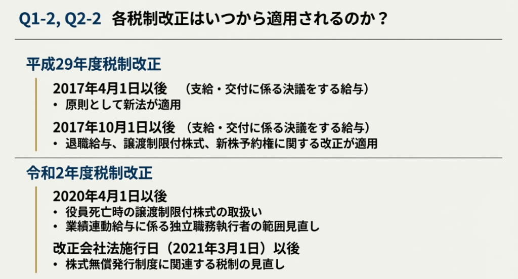 - Q2-2 役員給与に関する令和 2 年度の税制改正はいつから適用されるのですか。