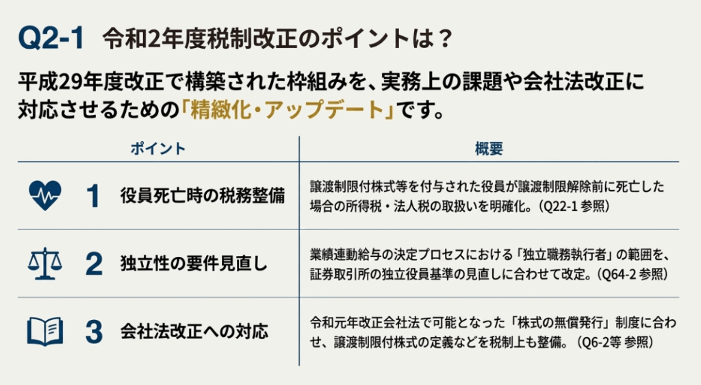 Q2-1 役員給与に関する令和 2 年度の税制改正について教えてください。