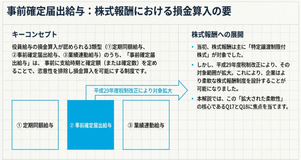 内容:事前確定届出給与としての株式報酬(Q&A解説)