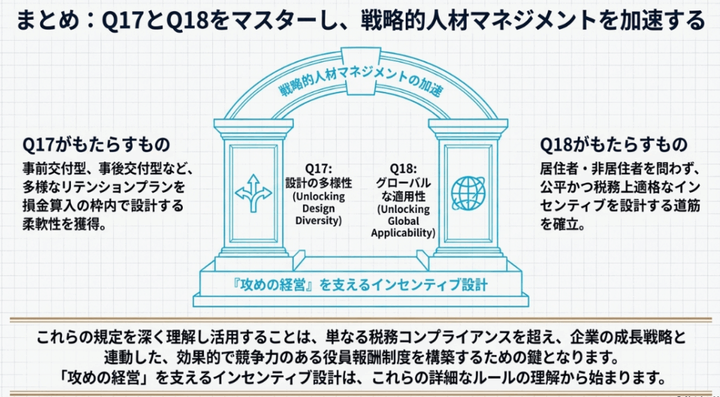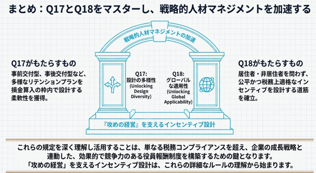 Q17とQ18から導き出される実務上の結論は、以下の2点に集約されます。