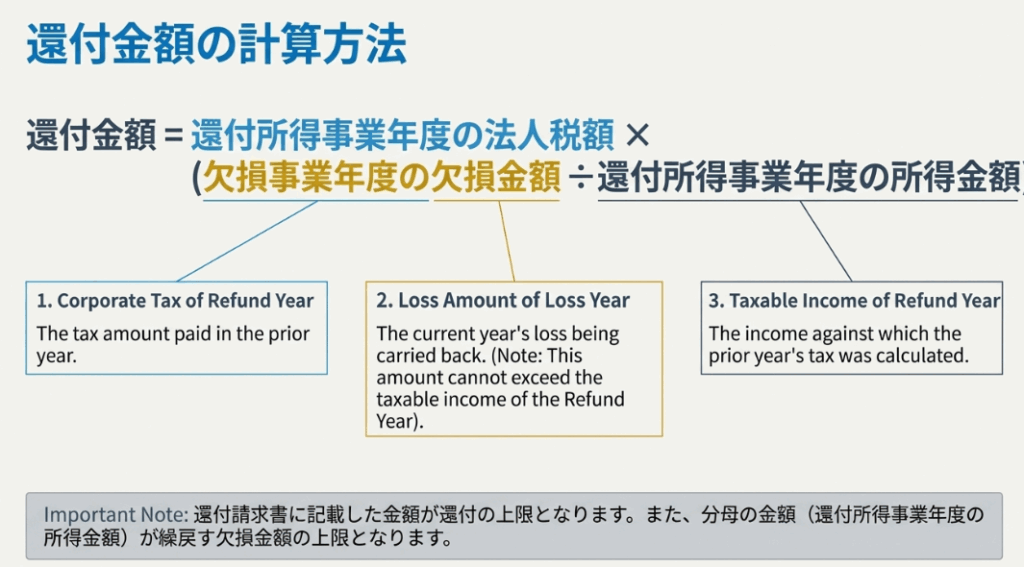 • 還付される金額は、そもそも前期に納付した法人税額(還付所得事業年度の法人税額)を超えることはありません。