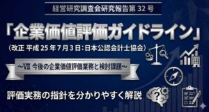 日本公認会計士協から平成 19 年5月 16 日(改正 平成 25 年7月3日)に公表された経営研究調査会研究報告第 32 号「企業価値評価ガイドライン」のうち「Ⅳ 評価アプローチと評価法」について解説します。