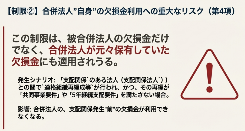 3.3. 重要な制限②:合併法人自身の欠損金利用制限