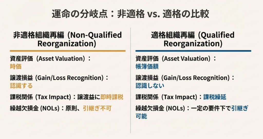 この違いは、特に繰越欠損金のような重要な税務資産の引継ぎ可否に直結するため、M&Aの戦略的意思決定において極めて重要です。