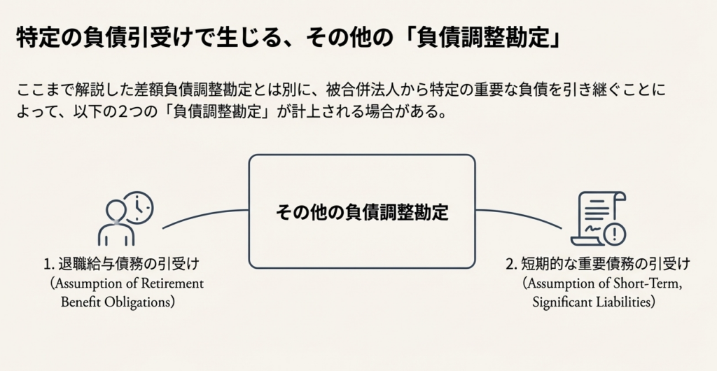 合併後に発生が見込まれる重要な債務(例:訴訟損失など)を引き受けた場合、その見込額が計上されます。