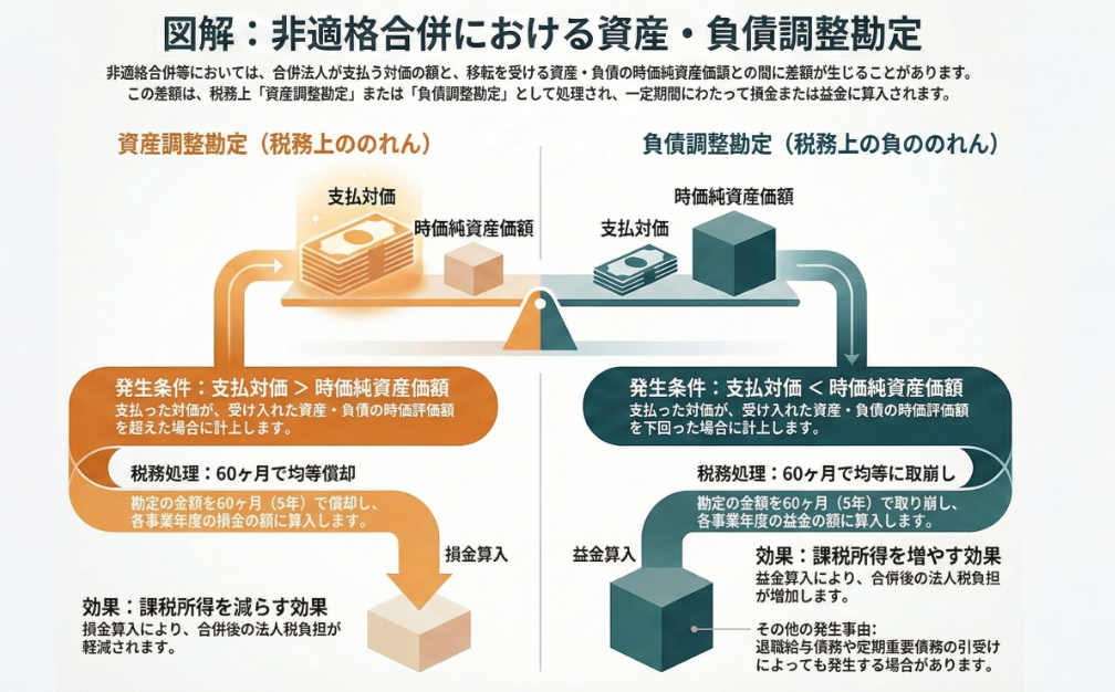 解説:非適格合併における「資産調整勘定」と「負債調整勘定」の税務実務解説
