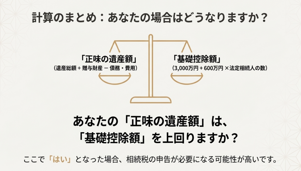 この解説で最も重要な、皆さんに必ず押さえていただきたい最終的な判断基準をここでお伝えします。複雑に見える相続税の計算も、すべてはこの一点を判定するために行われます。