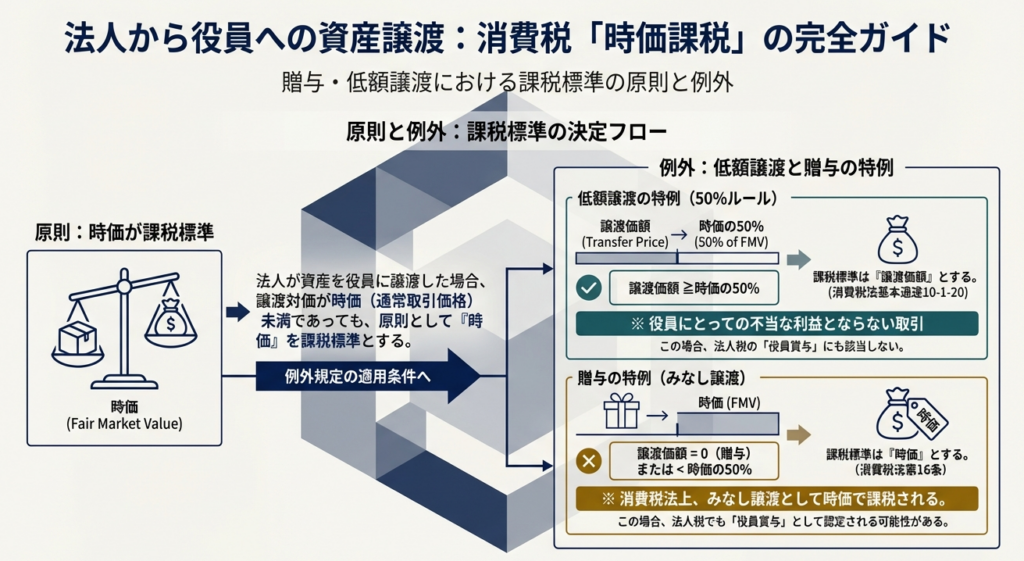 これらの原則が、法人・役員間の資産移動における消費税務の基本です。