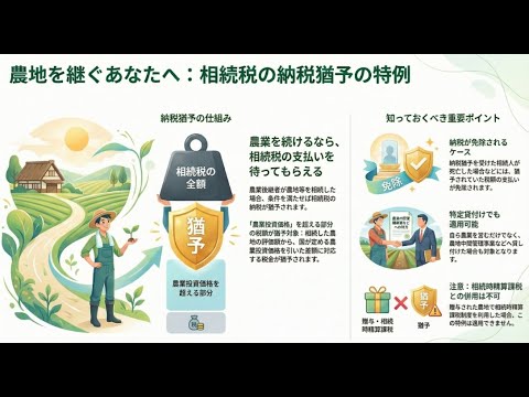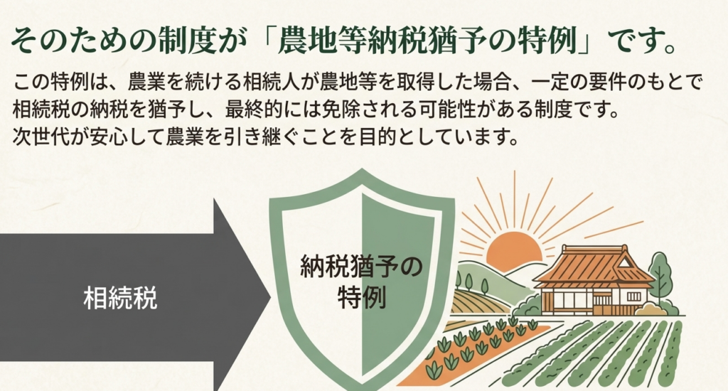 新人スタッフの皆さん、ようこそ。これから皆さんが相続税の実務に携わる上で、避けては通れない重要な特例の一つ、「農業相続人が農地等を相続した場合の納税猶予の特例」について解説します。