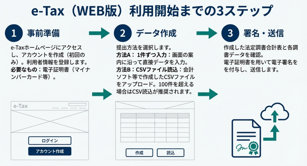 e-Taxソフト(WEB版)における法定調書作成・提出の流れ