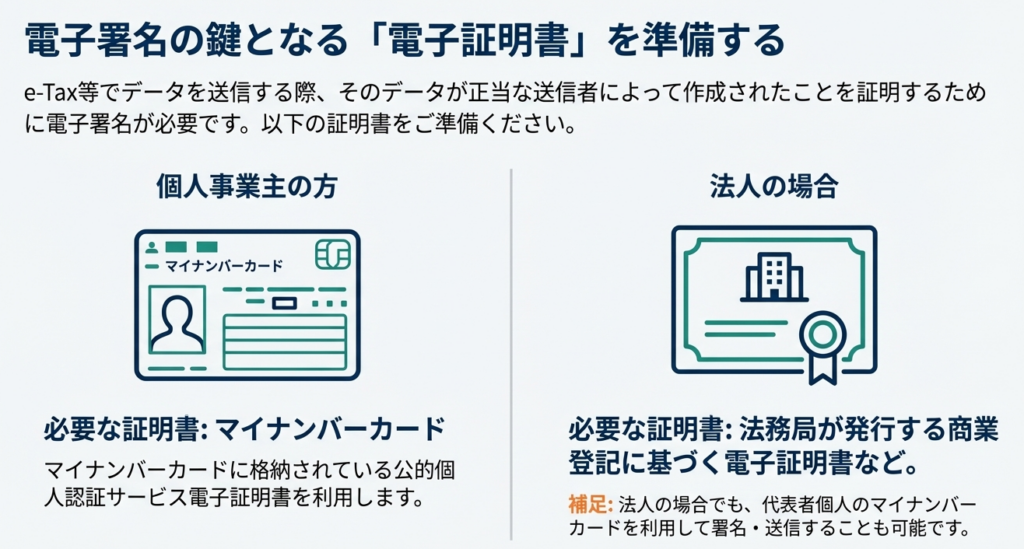 ◦ 電子署名に必要な電子証明書(マイナンバーカード等)の準備