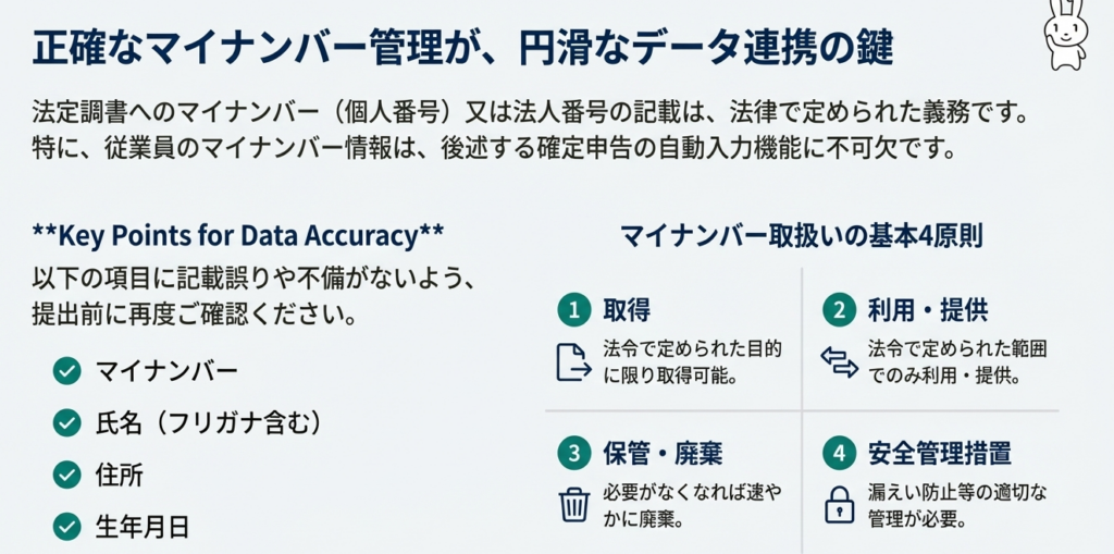 どの方法を選択するにせよ、マイナンバーの適切な取り扱いは避けて通れない重要なテーマです。