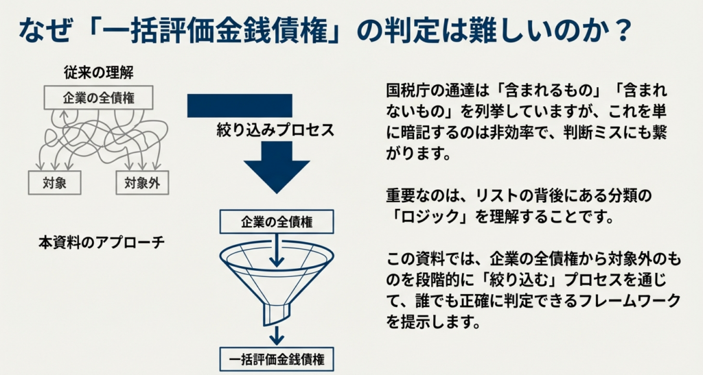 1. はじめに:なぜ一括評価金銭債権の理解が重要なのか