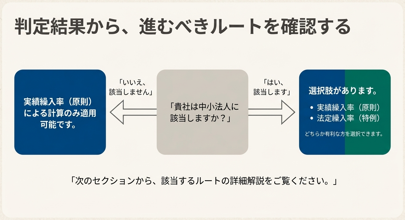 どちらのルートを適用すべきか、以下の思考プロセスに沿って判断してください。