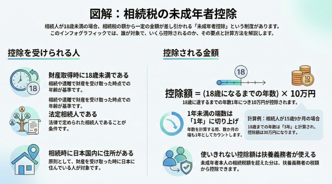 この制度は、相続人が未成年者である場合に、その相続税の額から一定の金額を差し引くことを目的としています。