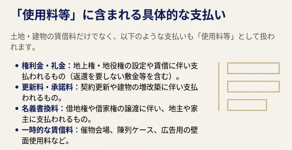 ポイント4:何が「不動産の使用料等」に含まれるのか?