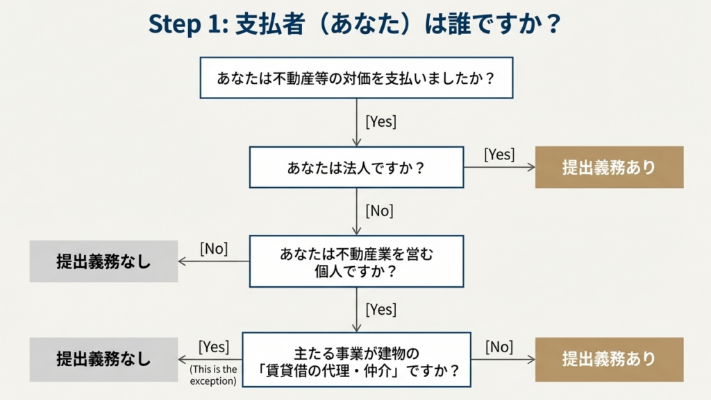 1. 「不動産等の譲受けの対価の支払調書」を提出する義務があるのは、どのような者ですか?