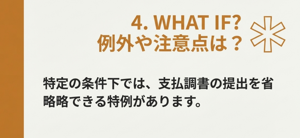 したがって、提出漏れや記載誤りは、当局から取引の透明性について疑義を持たれるきっかけとなり得ます。ささいな事務ミスが、余計な税務調査の引き金とならないよう、要件を正しく理解し、万全の体制で臨む必要があります。