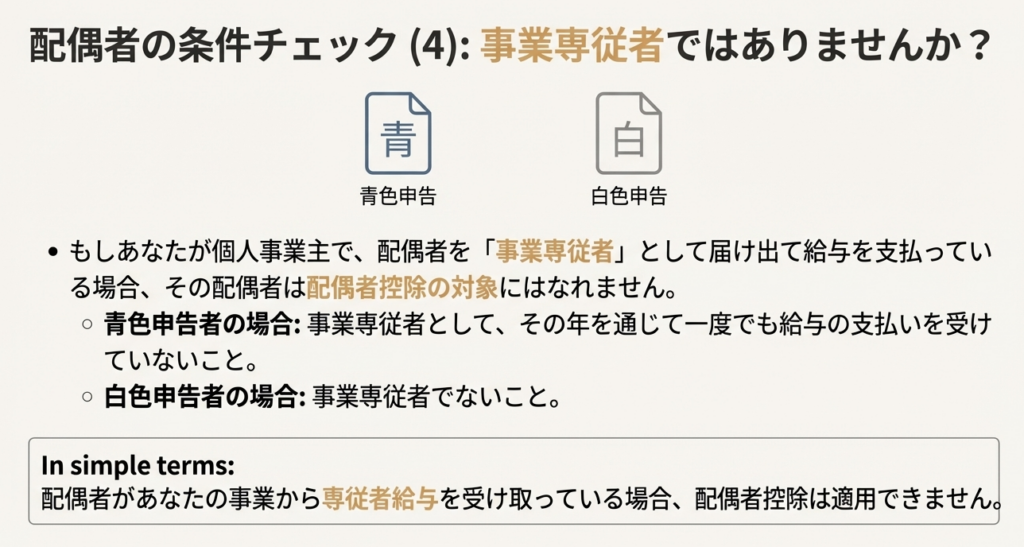 4. 青色申告者・白色申告者の事業専従者でないこと