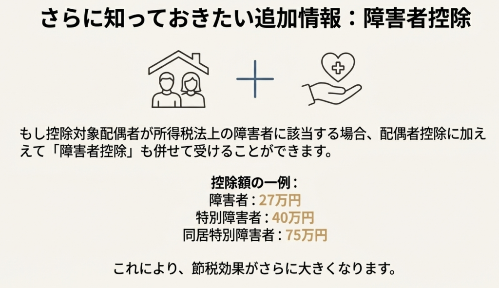 8. 配偶者が障害者である場合、配偶者控除に加えてどのような控除が受けられますか?