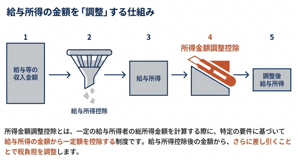 所得金額調整控除とは、特定の条件を満たす給与所得者の総所得金額を計算する際に、給与所得の金額から一定の金額を控除する制度です。これにより、税負担が軽減されます。