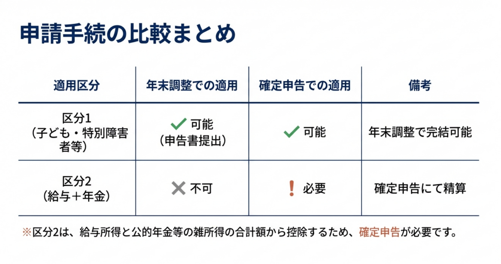 これらは年末調整や確定申告の手続きを通じて適用されます。