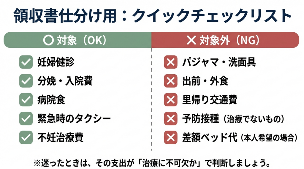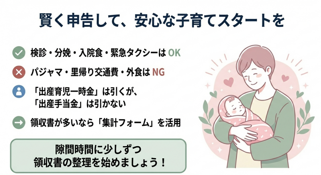 出産費用が医療費控除の対象となるか否かを判断する上での大原則は、「その費用が医療行為または出産そのものに直接必要であったか否か」という点にあります。この基準に照らし合わせることで、多くのケースを適切に判断することが可能です。