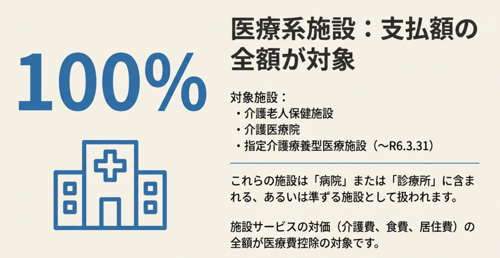 ◦ 施設サービスの対価として支払った自己負担額の全額が医療費控除の対象となります。