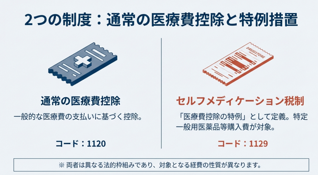 セルフメディケーション税制は、通常の医療費控除の「特例」として位置づけられています。